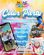 Come join us for a celebration of Autism Awareness Month, April 18th 3:00 pm - 7:00 pm at MPAC, 636 Railroad Square, Unit 6, Tallahassee, FL. There will be vendors and a Color Party. If you'd like to participate in the Color Party RSVP at MPAC by April 16th.